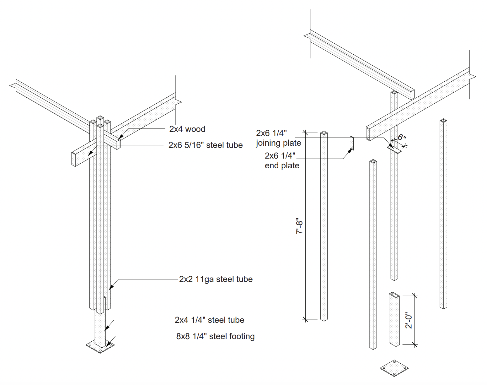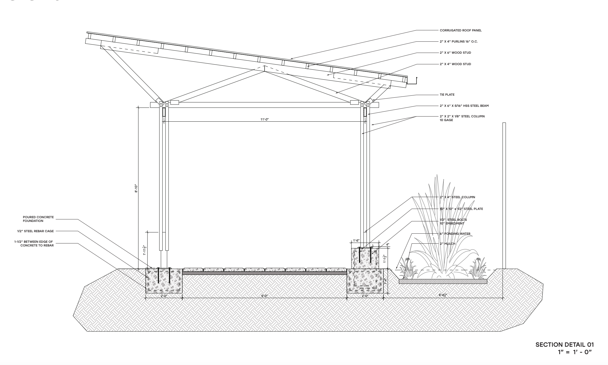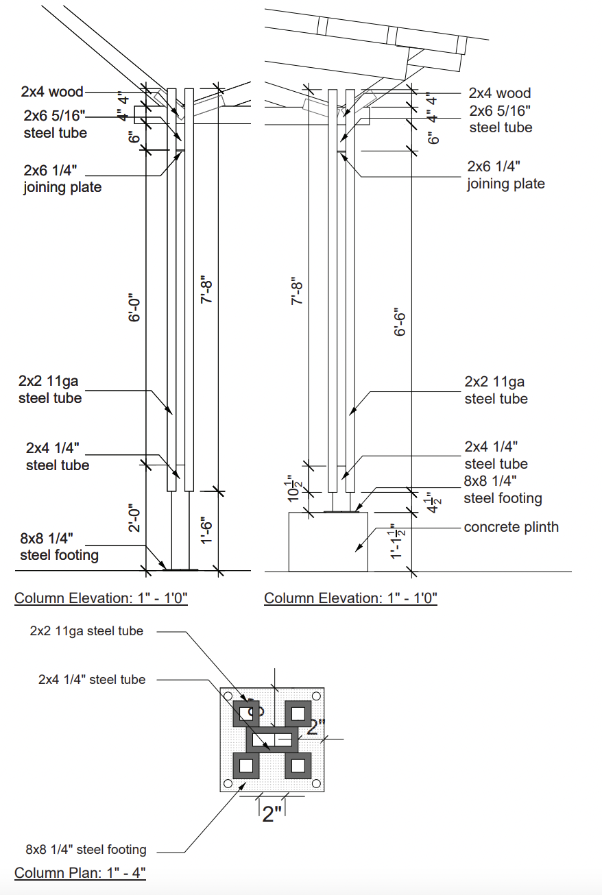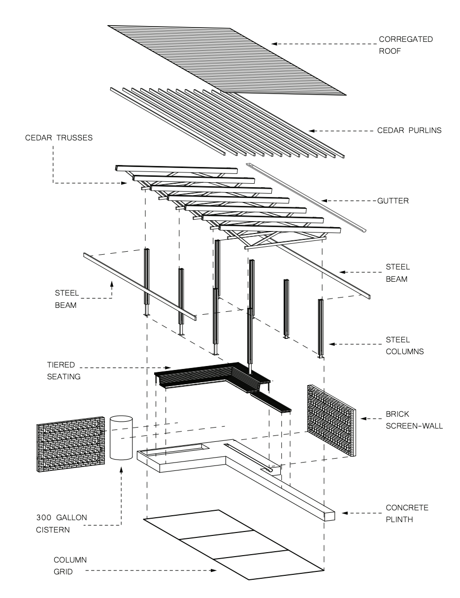 After refining our understanding of our clients goals, we split again to develop individual aspects of the design. I designed the columns while others did the trusses, foundation/plinth, landscaping, brick wall, bench, and water management system all while collaborating and communicating our decisions and concepts with one another.